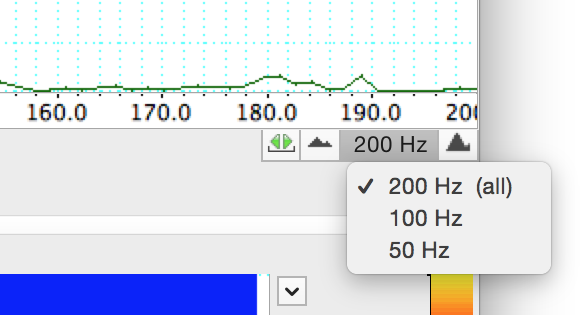 - Set the horizontal scaling for the Spectrogram to 50:1.
