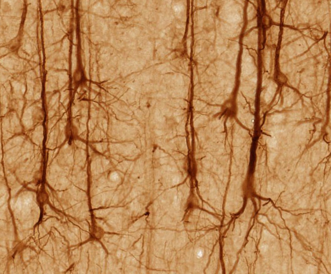 Pyrimidal neurons are the most numerous excitatory neurons in the cerebral cortex (Bekkers 2011). They transform the sum of synaptic inputs into patterns of action potentials which may travel to other regions of the brain, or to muscle targets far away in the body to signal motor behavior. When we perform EEG we are measuring the activities of many (100s of thousands of) pyrimidal neurons as they go about processing information and coordinating activity.
