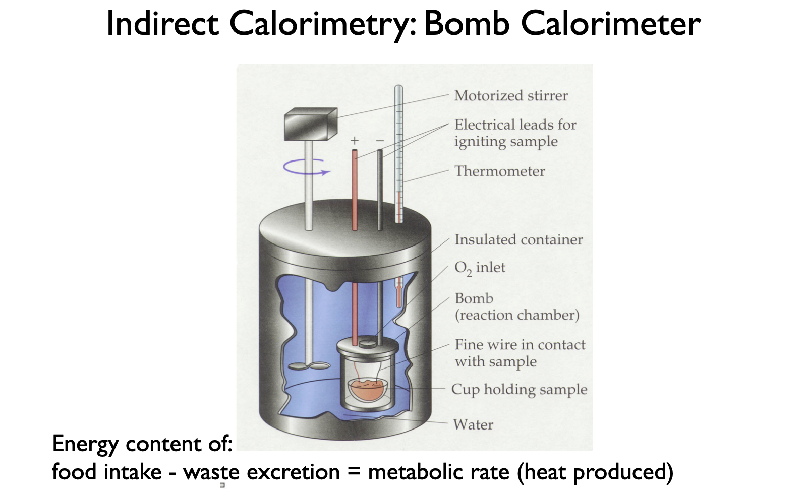 - What is direct and indirect calorimetry? Why can we metabolism by measuring an animal’s heat production (think thermodynamics)? When we try to measure metabolism by measuring heat, or O2, or CO2 – which methods are good for aerobic vs. anaerobic metabolism?