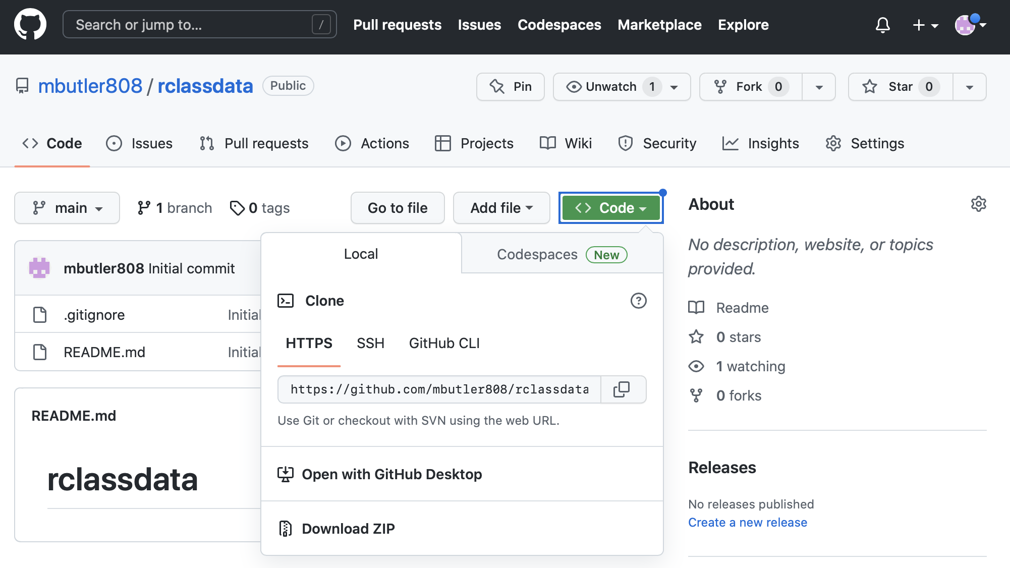 git clone https://github.com/mbutler808/rclassdata.gitIf you set up your personal access token, it should appear on your computer! If not, go back to Section 4.2 and try again.