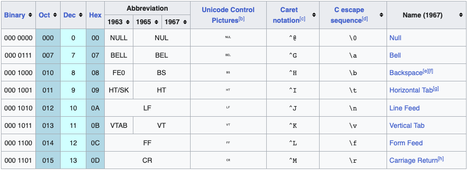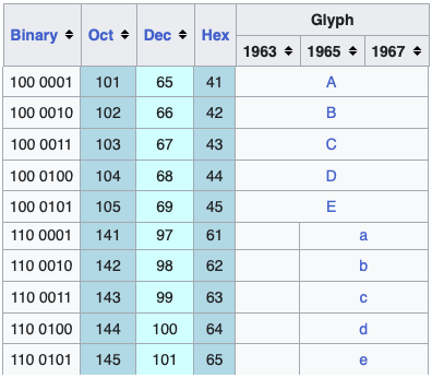 ASCII uses 7 bits – seven variables that can be either 0 or 1 – which results in 27 = 128 unique items, enough to encode all the characters on an English language keyboard (all characters, numbers, and symbols, Figure 1, Figure 2). However, we need to expand the possibilities if we want to include support for other languages or additional characters.