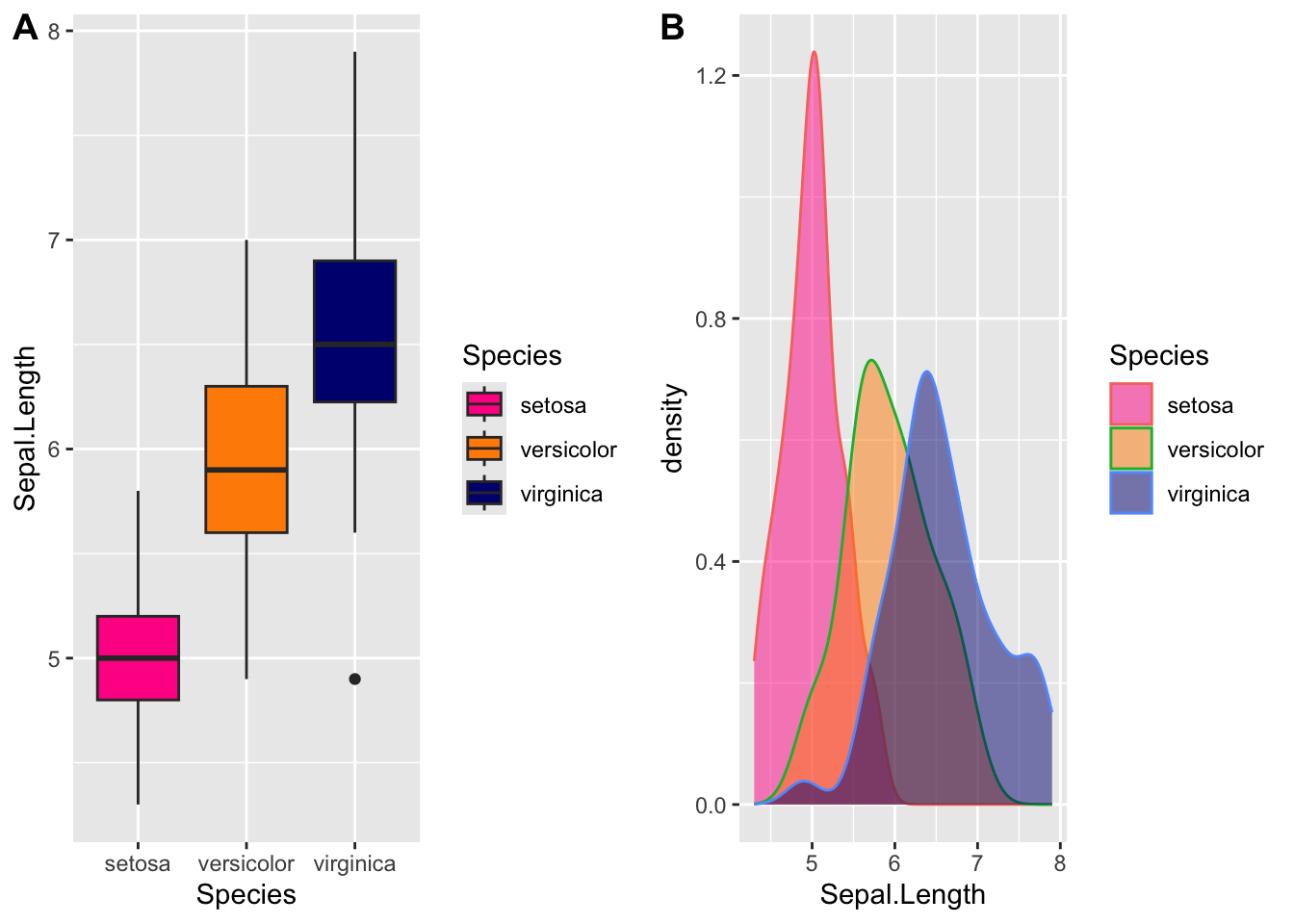 Weʻll start by loading the ggplot package and using the built-in iris dataset.