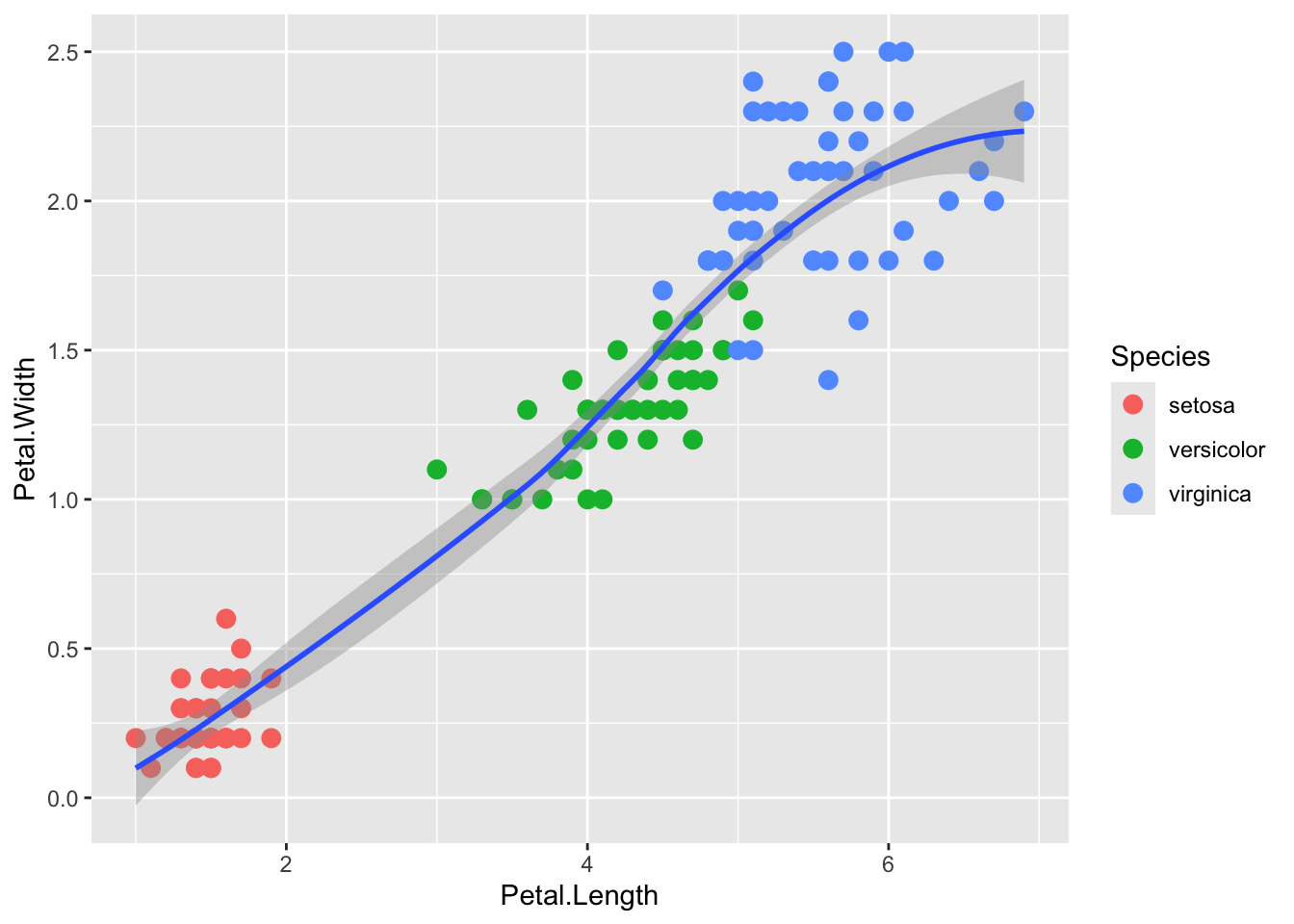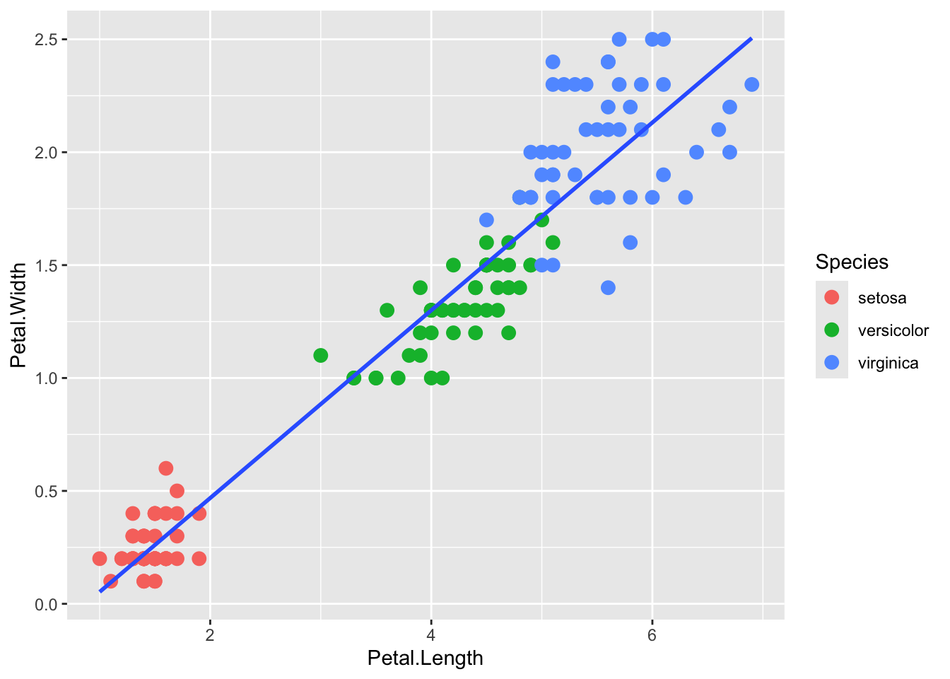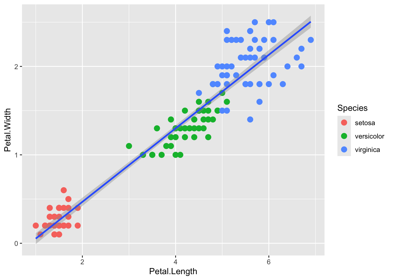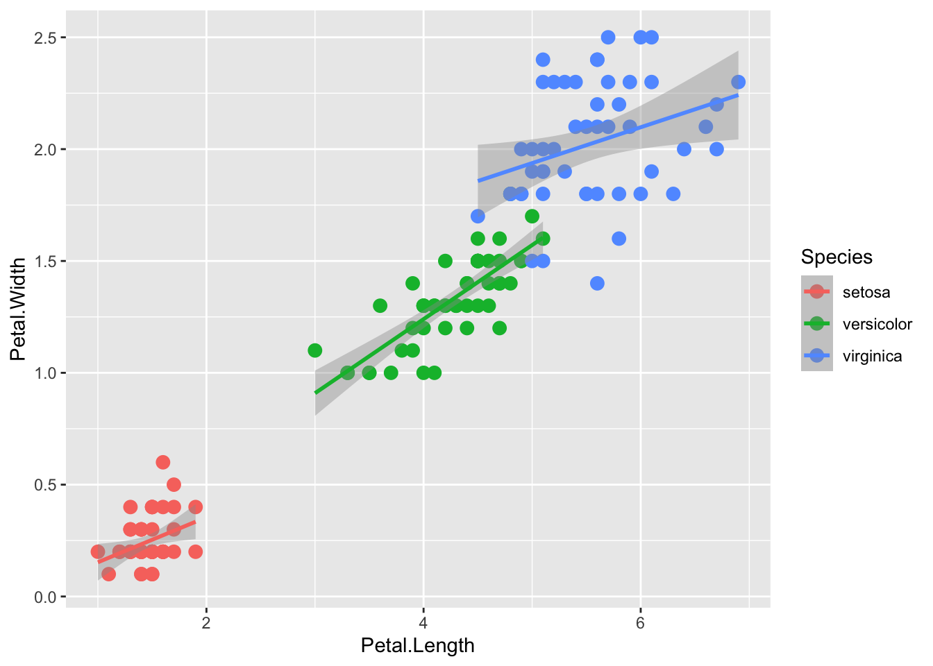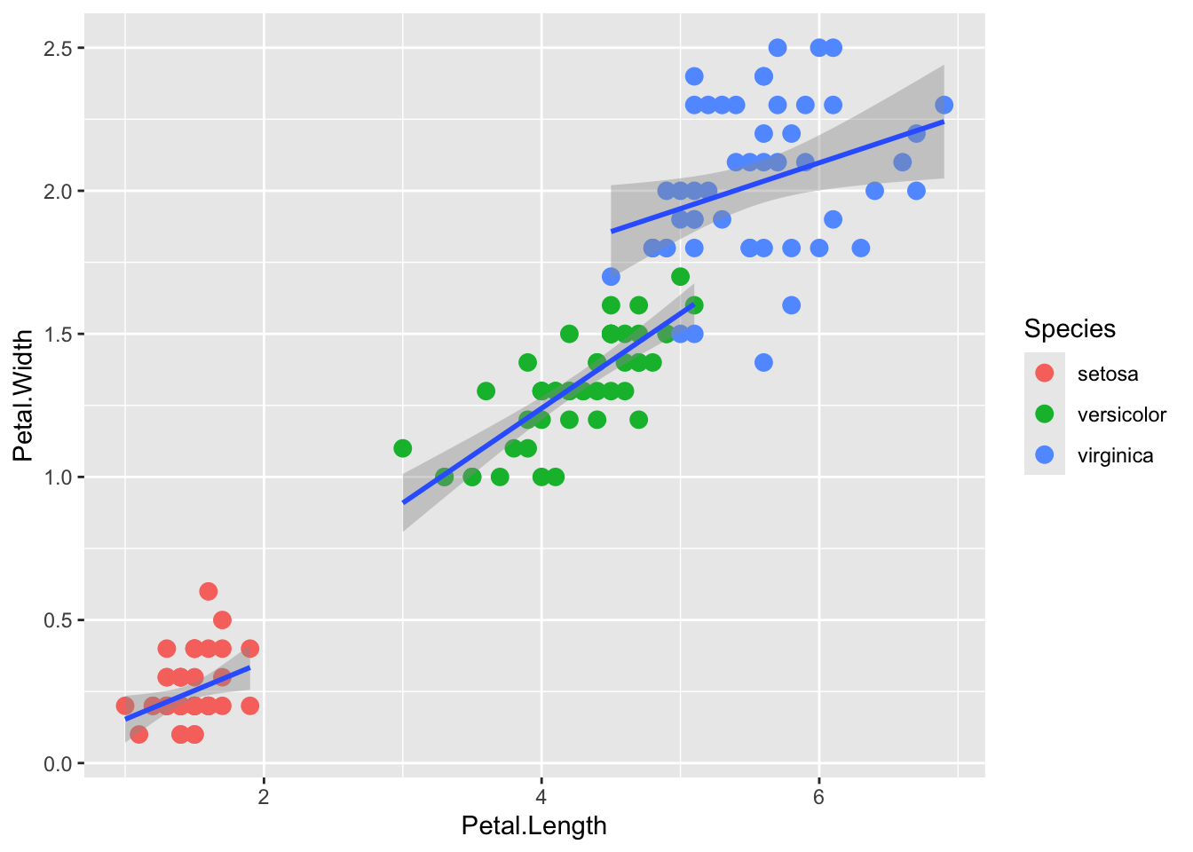 geom_smooth( aes(group=Species), method="lm")`geom_smooth()` using formula = 'y ~ x'