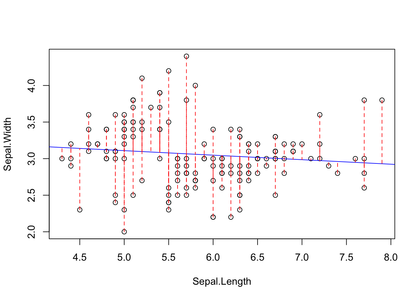 lm.fit <- with(iris, lm(Sepal.Width ~ Sepal.Length))