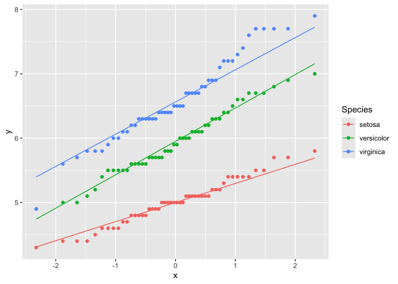 ggplot(iris, aes(sample=Sepal.Length)) +