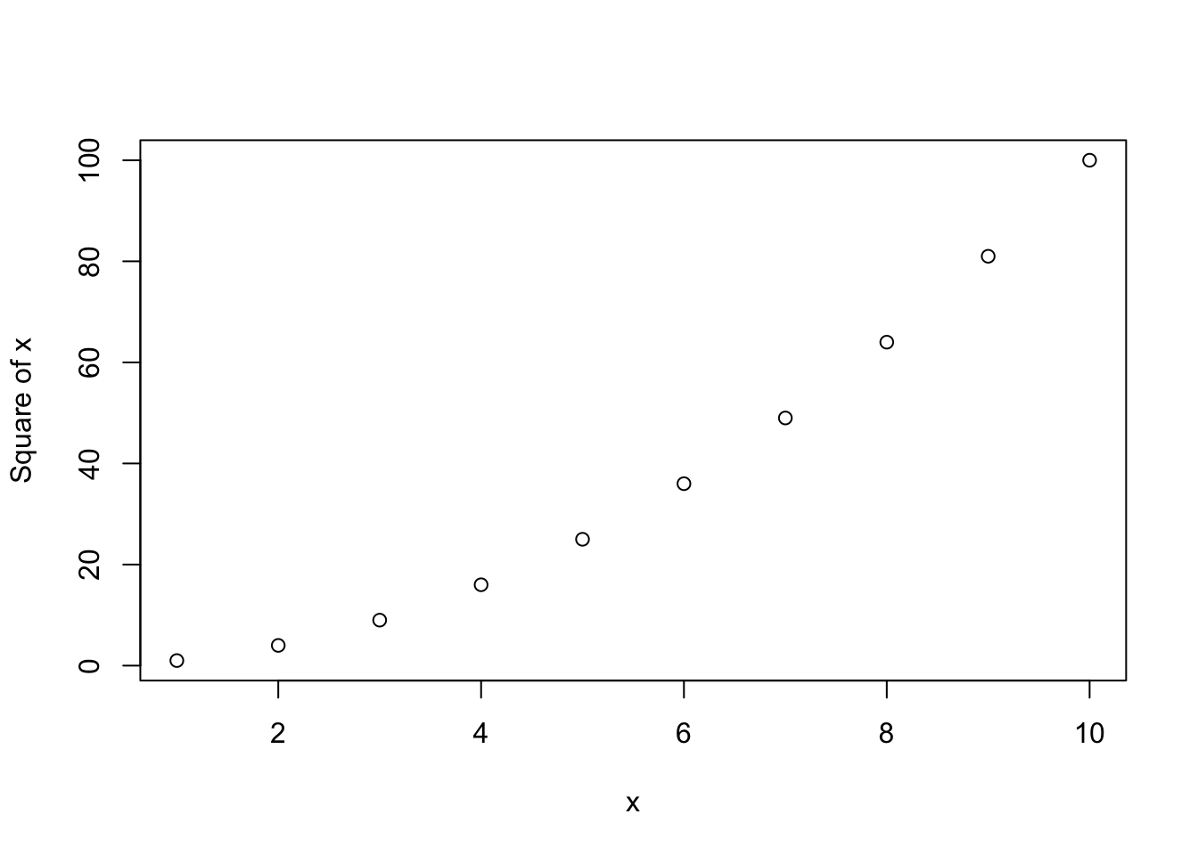 mysq <- function( x, yylab="Square of x" ) { # default argument for the y-label