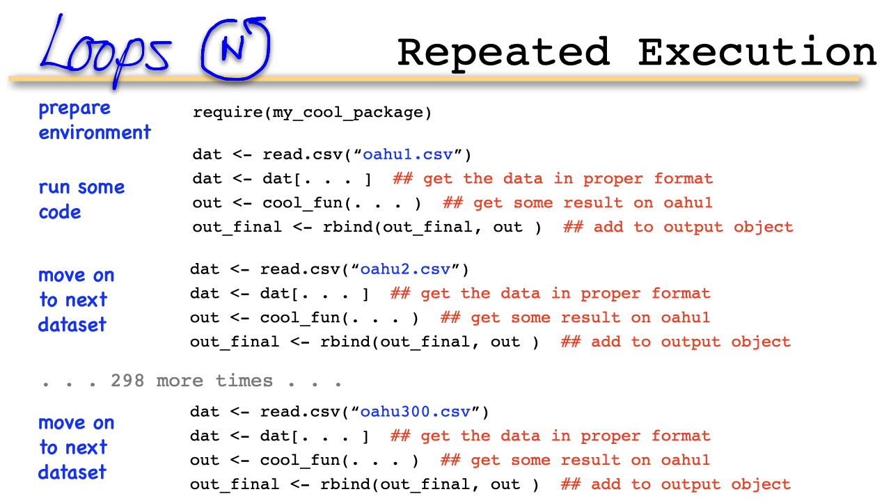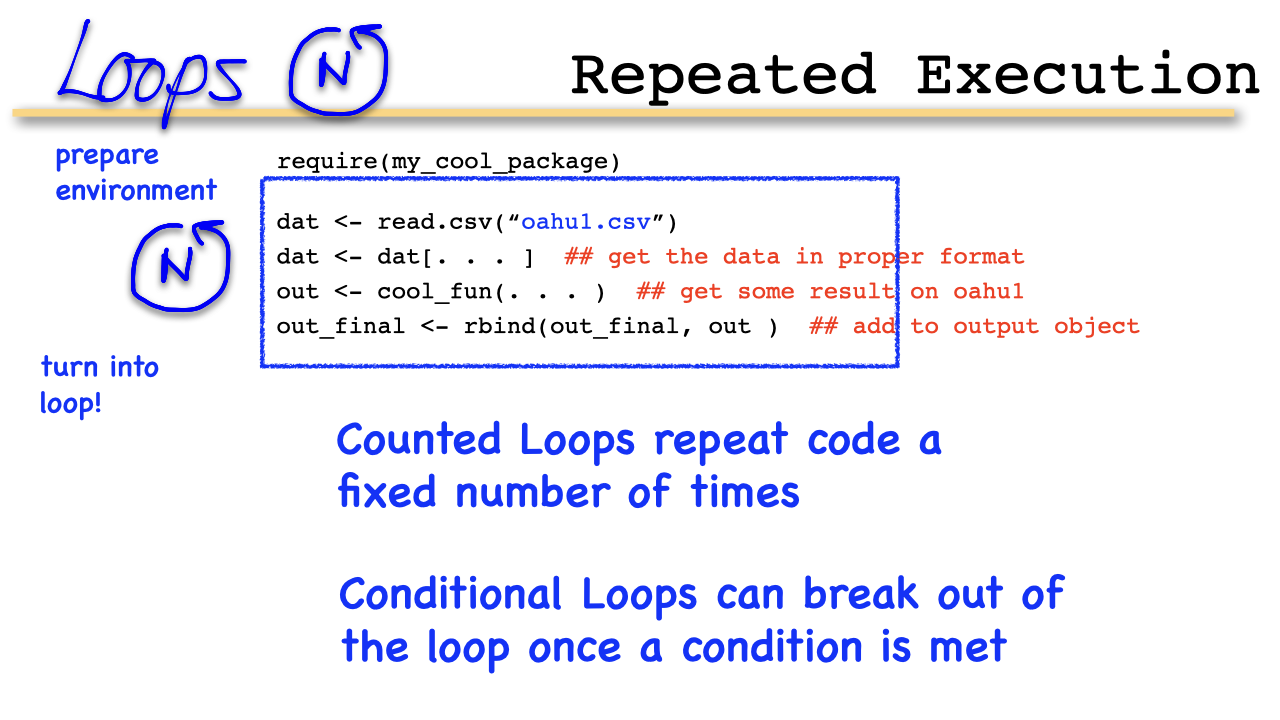 R is not only a collection of functions for data analysis and matrix math, but also a fully-featured programming language with all of the usual conditional statements.