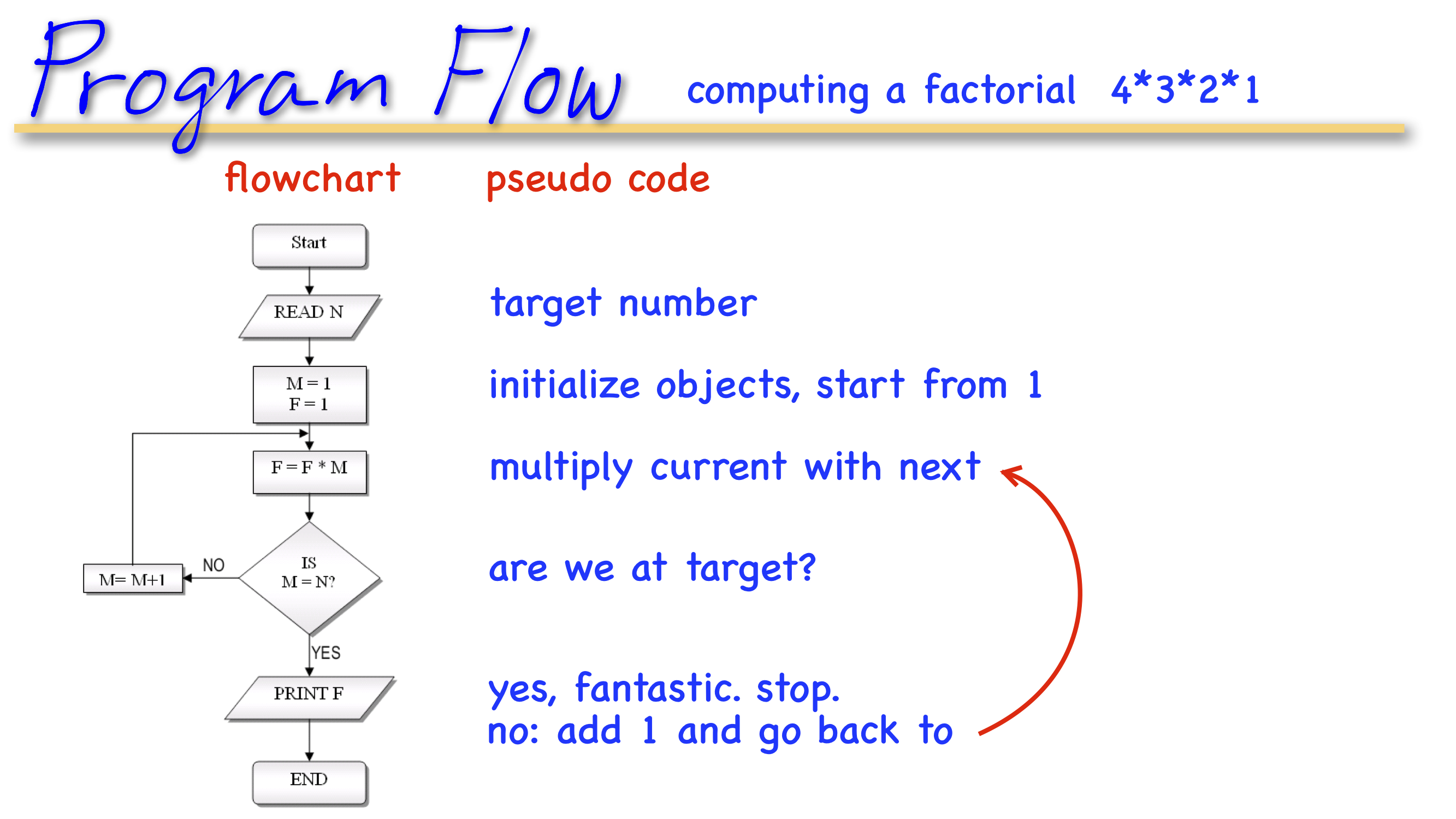 The flow of execution can be diagrammed in a flowchart, and is really helpful for seeing the logical structure of the project. It also encourages modularity and reusablility of your code.