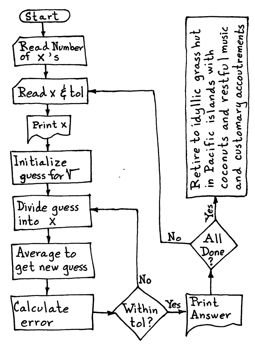 if, while, and for allow you to control the flow of an R programLetʻs write a program to calculate the square root of a number, following the Fortran Coloring Book: