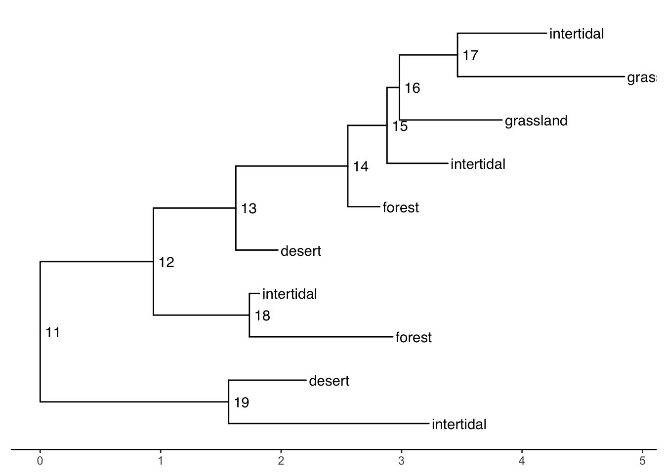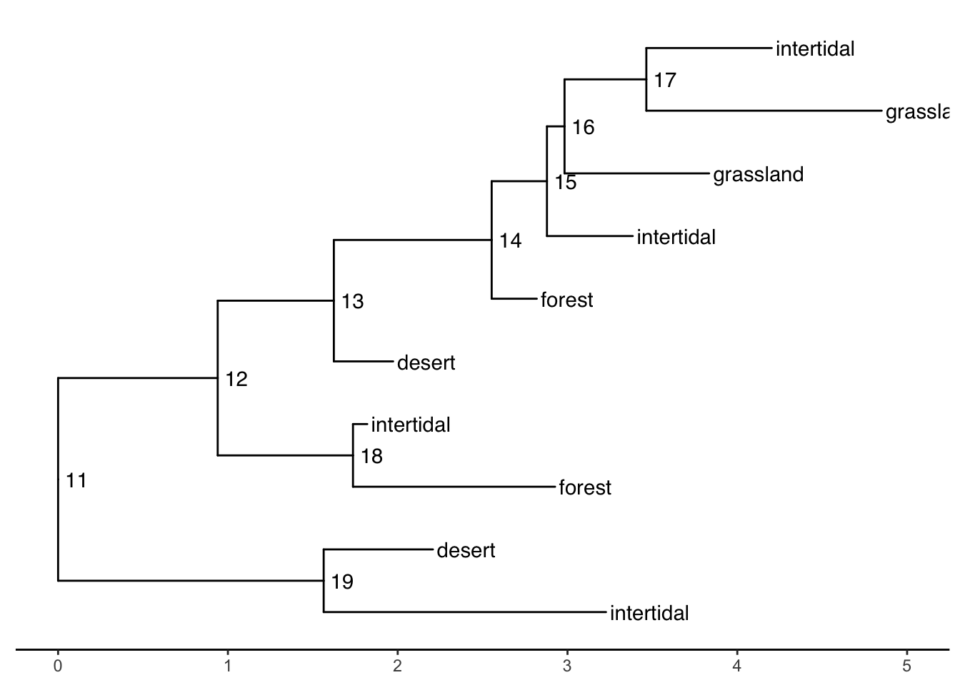 ggtree(tree) # ggtree plotting function