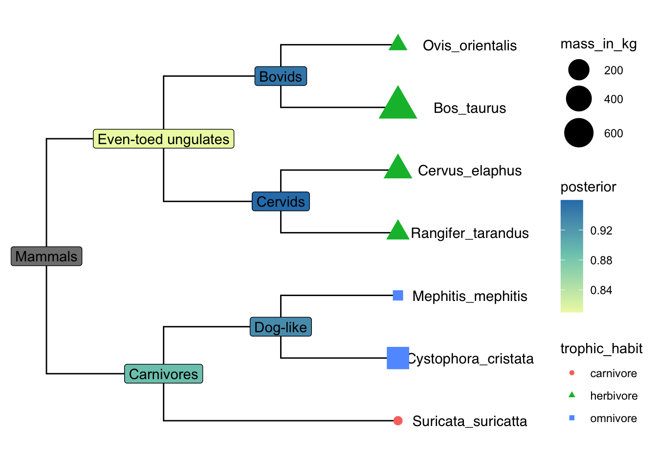 geom_tippoint(aes(shape = trophic_habit, color = trophic_habit,